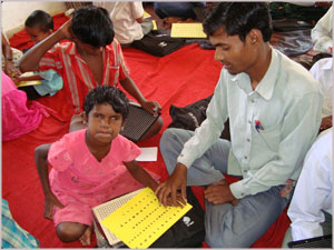 Under this program primarily a special attention is provided to make avail the facility of education at the door steps of the visually impaired children and advocacy with government is undertaken by the efforts of the organization for ensuring provision of appropriate educational, health and social benefits to visually impaired children. It includes the levels of education such as Developmental Education/ Early Intervention Programs, Pre Primary, Primary, middle and Secondary as well as Higher Secondary etc. At present 323 students are enrolled under this programme and continuing education under the direct supervision of the staff’s member and at the different schools. PRERAK Provides Home bound services to the students of visually impaired and additional disabilities. The operational areas are covered by Magarload block of Dhamtari district and all the blocks of Raipur, Balodabazar and Gariaband. Assessment is carried out to find the severity of the blindness to provide supportive assistance in form of concession, loan, pension, and other benefits from the government. With the efforts of the organization the visually impaired children are continuing education in the schools under SSA programme and also enrolled in the district inclusive education progrmme implemented by the organization with the support of sight saver international Bhopal.
